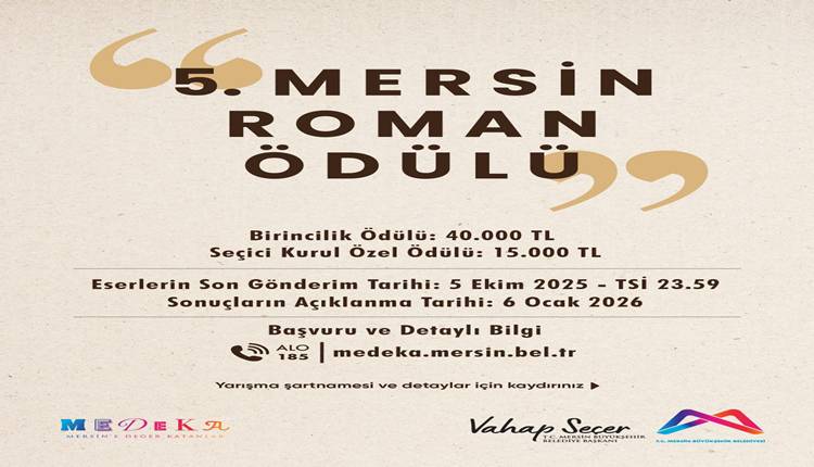 Mersin Roman Ödülü 2025 Detaylı Bilgi ve Başvuru için: https://www.mersin.bel.tr/duyuru/5-mersin-roman-odulu-basliyor-1753429447