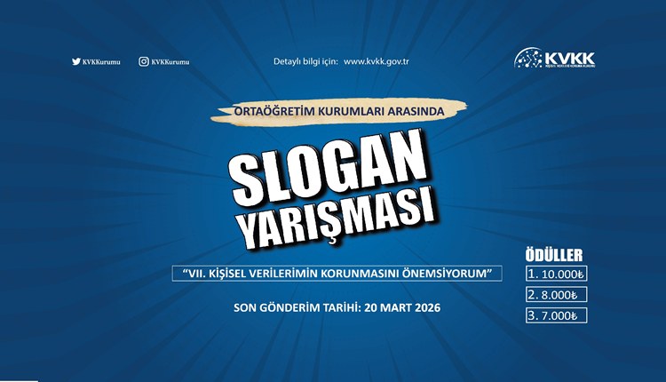 Kişisel Verileri Koruma Kurumu (KVKK) tarafından, Kişisel verileri korumanın önemine ilişkin farkındalığı arttırmak amacıyla Kişisel Verilerimin Korunmasını Önemsiyorum Slogan Yarışması 2026 düzenleniyor. Ödüllü slogan yarışması başvuruları devam ediyor.
