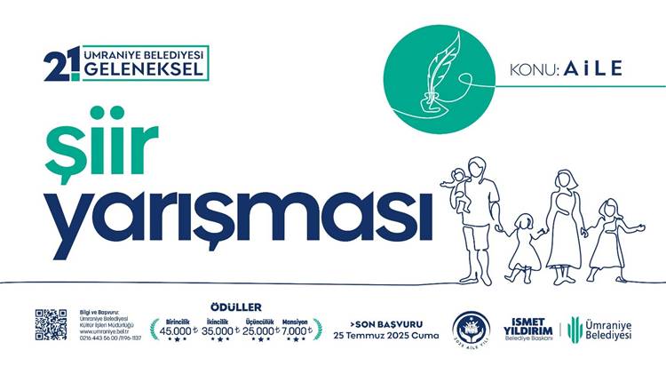 Ümraniye Belediyesi tarafından “aile” temasını sanatsal bir bakış açısıyla işleyerek toplumda aile bilincini artırmak ve aile bağlarını güçlendirmek amacıyla Ümraniye Belediyesi Geleneksel Şiir Yarışması 2025 düzenleniyor. Ödüllü şiir yarışması başvuruları devam ediyor.